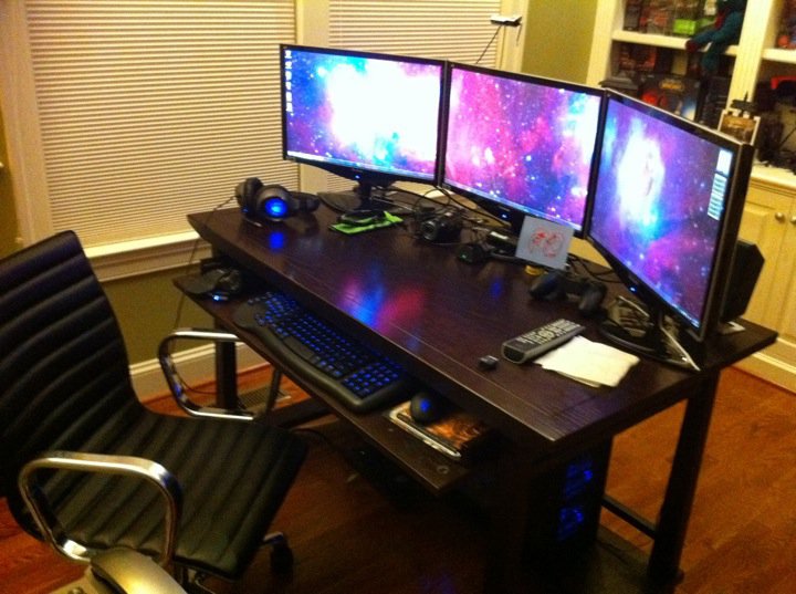 Initially I resisted mainly because I liked my nice 24″ display (a PVA Gateway model), and I couldnt fit three of them on my desk, but the advent of 3D changed everything. Here was a technology that seemed to be bringing even powerful machines to their knees and required new monitors. Well I resisted for all of about 3 months before finally taking the plunge a few weeks ago.