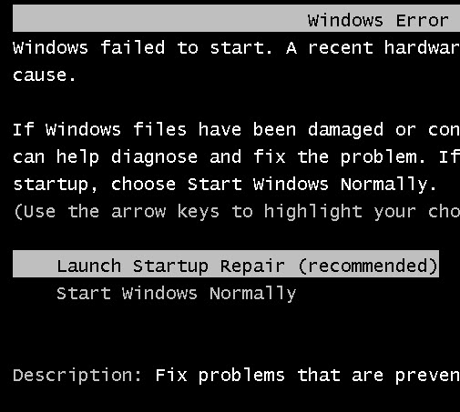 So how does one fix this annoying error? I took a bit of a sledge hammer approach… First, boot into BootCamp and select “Startup Repair”: