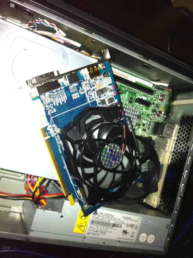 Next up is the video card and I sense that my luck is running out. This one was a gamble, but I wanted to push as far forward as I could in the ATI family (I have read reports of good success with DirectPath IO on ATI, but not so much on NVidia so even though I am a fire breathing tri-SLI wielding gamer, ATI it is!), while still being able to fit in a low profile SFF case. The Sapphire box looked small, my connection was lousy and so 3G was slow making iPhone research painful, so I decided to wing it and go for the 5670 512MBer…