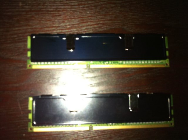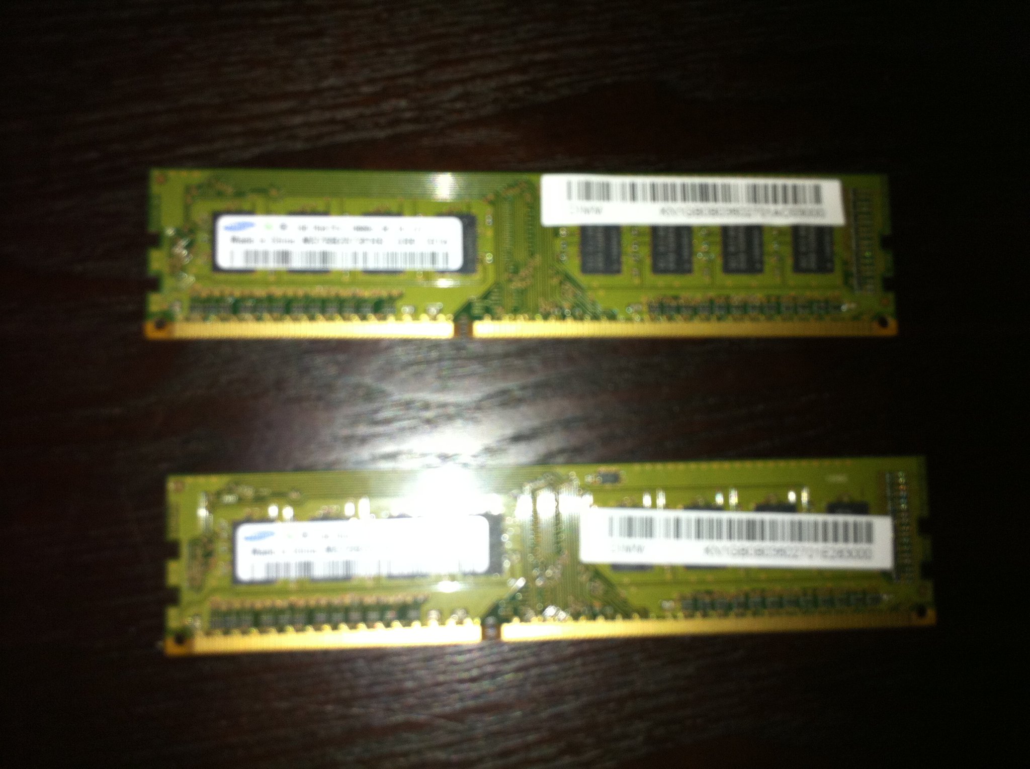 With the cage out of the way, its time for some RAM swapping. Eying the existing modules, I guess at the 1GB pair by the number of DRAM packages and lo and behold, I guess right! Good thing we were careful not to anger the IT gods earlier with that mystery screw. Out goes the old, and in goes the new: