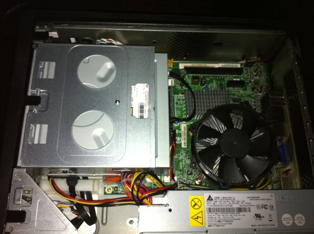 With the unit open, two things become immediately apparent; the aforementioned clean cabling job is clearly in evidence and the ubiquitous “mystery screw” has presented itself! Hats off to the refurb team… That little rattle I noticed moving the case onto the desk was indeed an oddly misplaced screw. Where does it go? Who knows! Not wanting to anger the IT gods, I set the mystery screw aside, figure that odds are it won’t matter much, and forge ahead!
