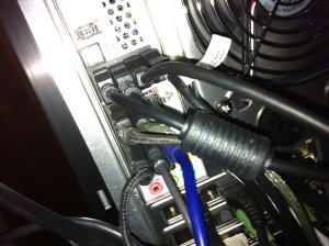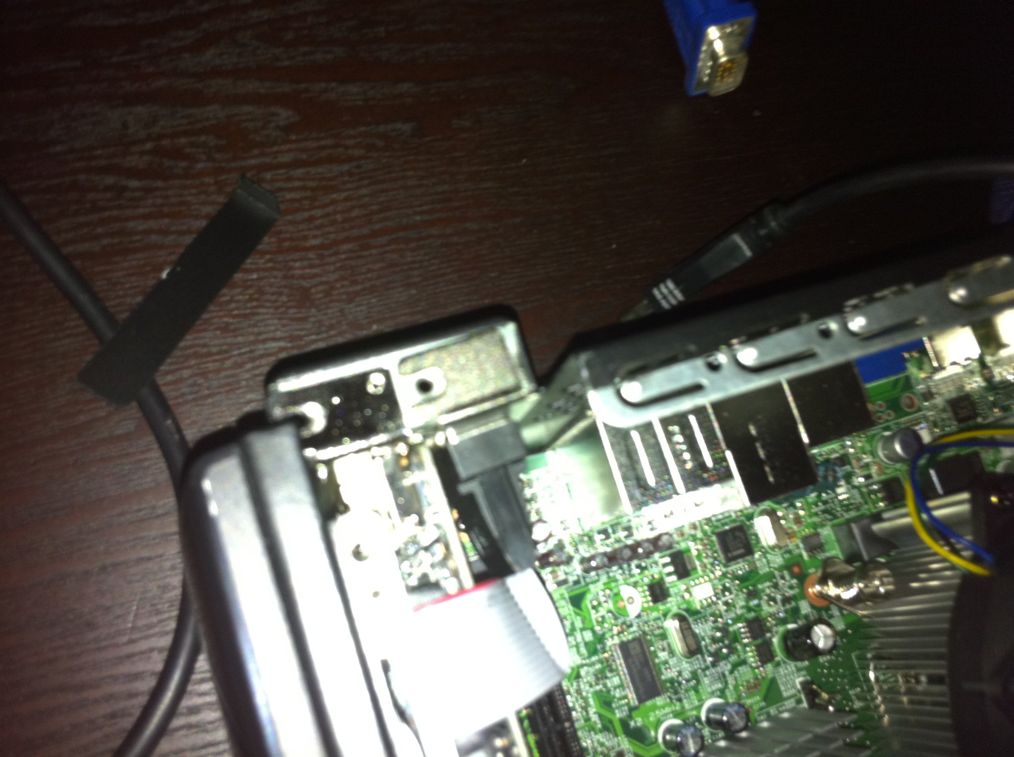 As expected, the ribbon cable finds enough play to fit with the card seated and once the bracket is screwed down, it doesn’t look half bad. Ghetto sure, but functional and good enough for government work: