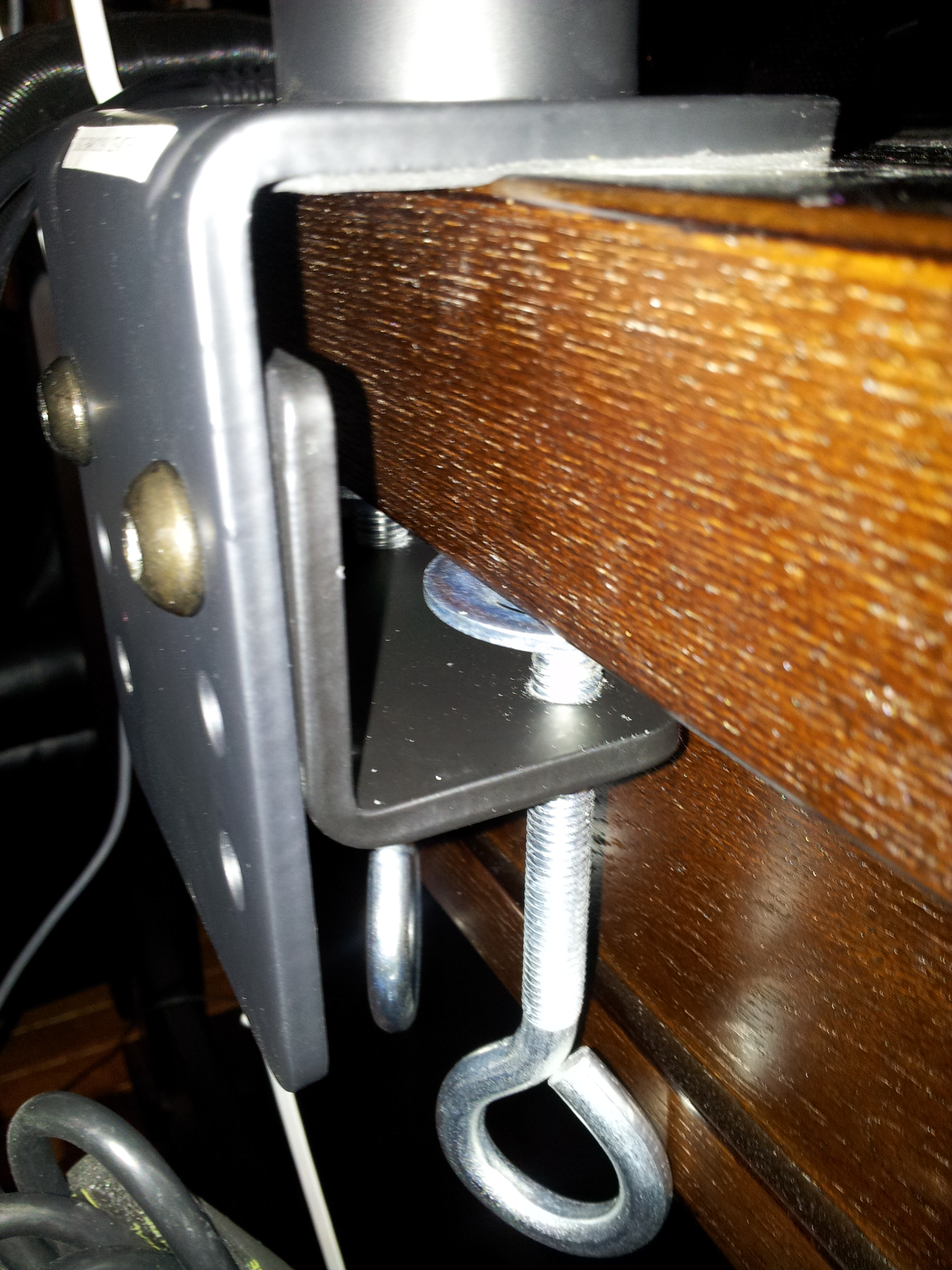I was a bit worried about the main clamp because the shape of the desk prevented me from either making it super tight (the clips would bump the table), or pushing it all the way in (in order to tighten). I erred on having it as far in as possible and tightening it as much as I could given the inability to “turn the screws” fully. End result seems stale. If they come crashing down Ill update the blog with a sad tale…