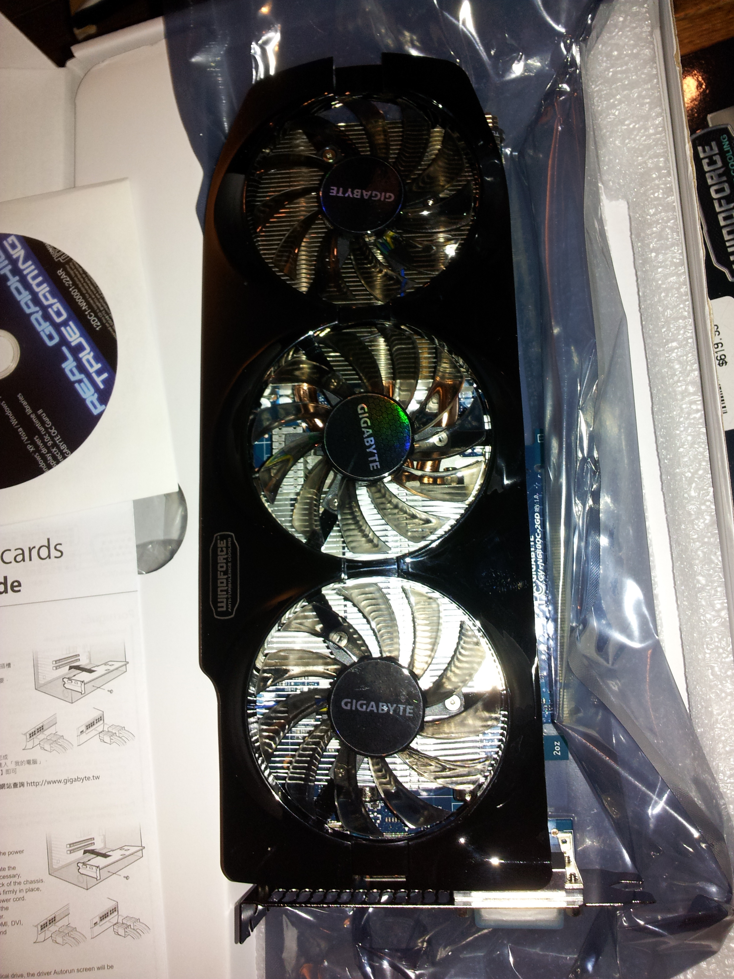 The physical install was painless and brainless. These are a direct part for part swap with the 580s. Same power connectors, slot requirements and basic size. See?