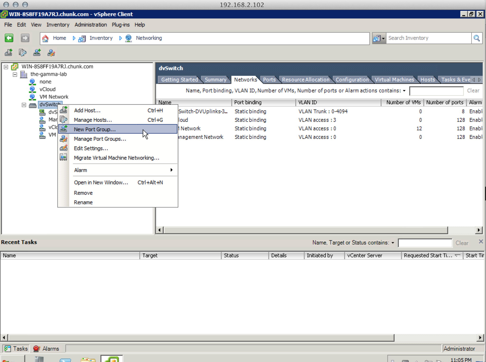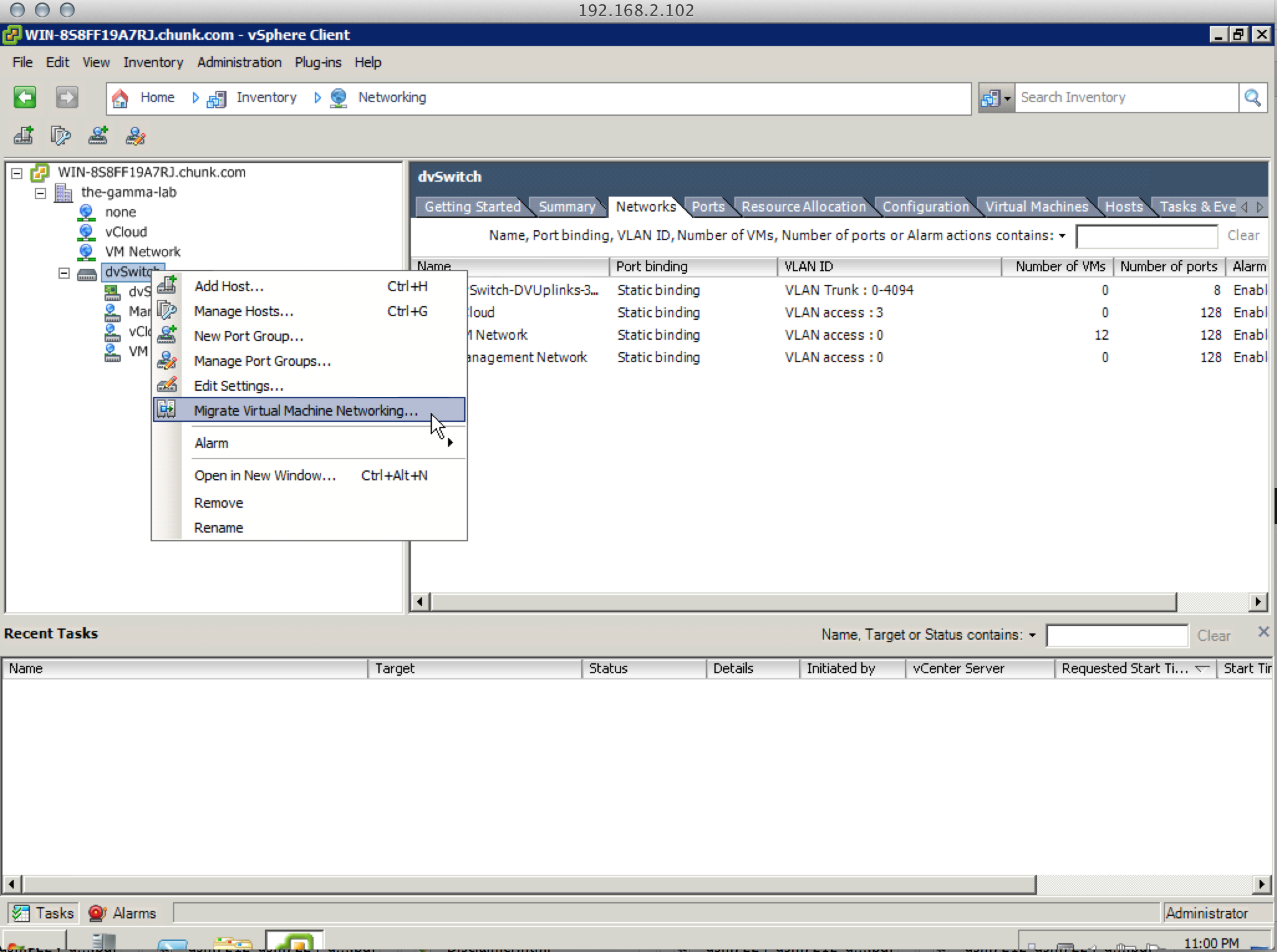 The above procedure should be repeated until all of the port groups required for migration are in place. Next step is to actually migrate the vSS groups. Right-click on the vDS and select “Migrate Virtual Machine Networking”: