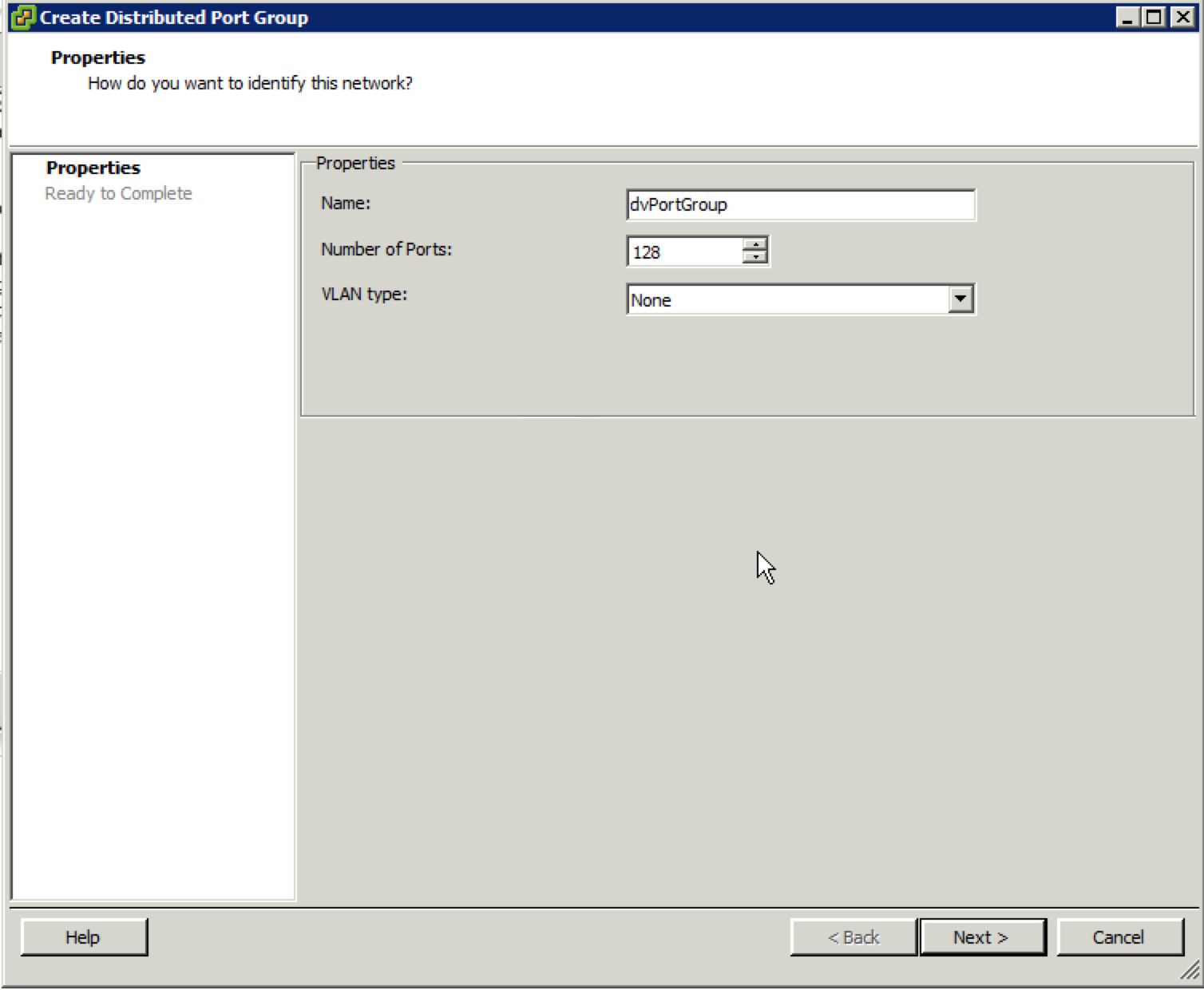 Not many options to worry about here surprisingly; just a name for the new port group and the maximum number of ports and whether or not VLAN tagging should be applied to the network: