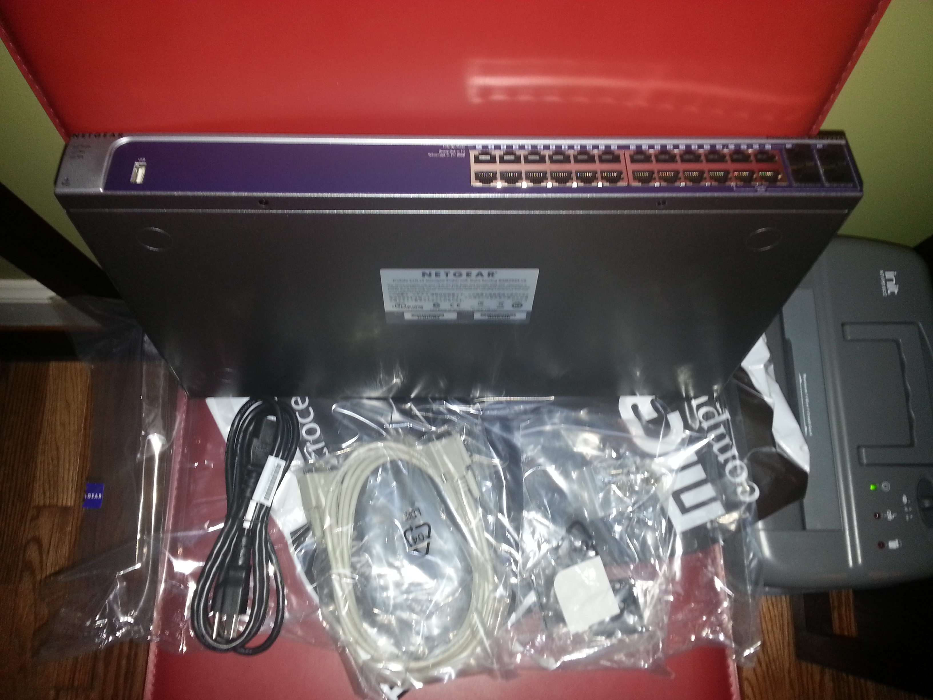 As I’ve said many times over the years, trips to Microcenter are just never a good idea for me. I always go with intent to browse and end up leaving with something I really “need”. This time I had gone in search of the NVidia Shield and somehow came home with a L3 switch that was actually more expensive than the tablet cum gaming device from Santa Clara! Here is the beast; a Netgear GSM7224-200NAS: