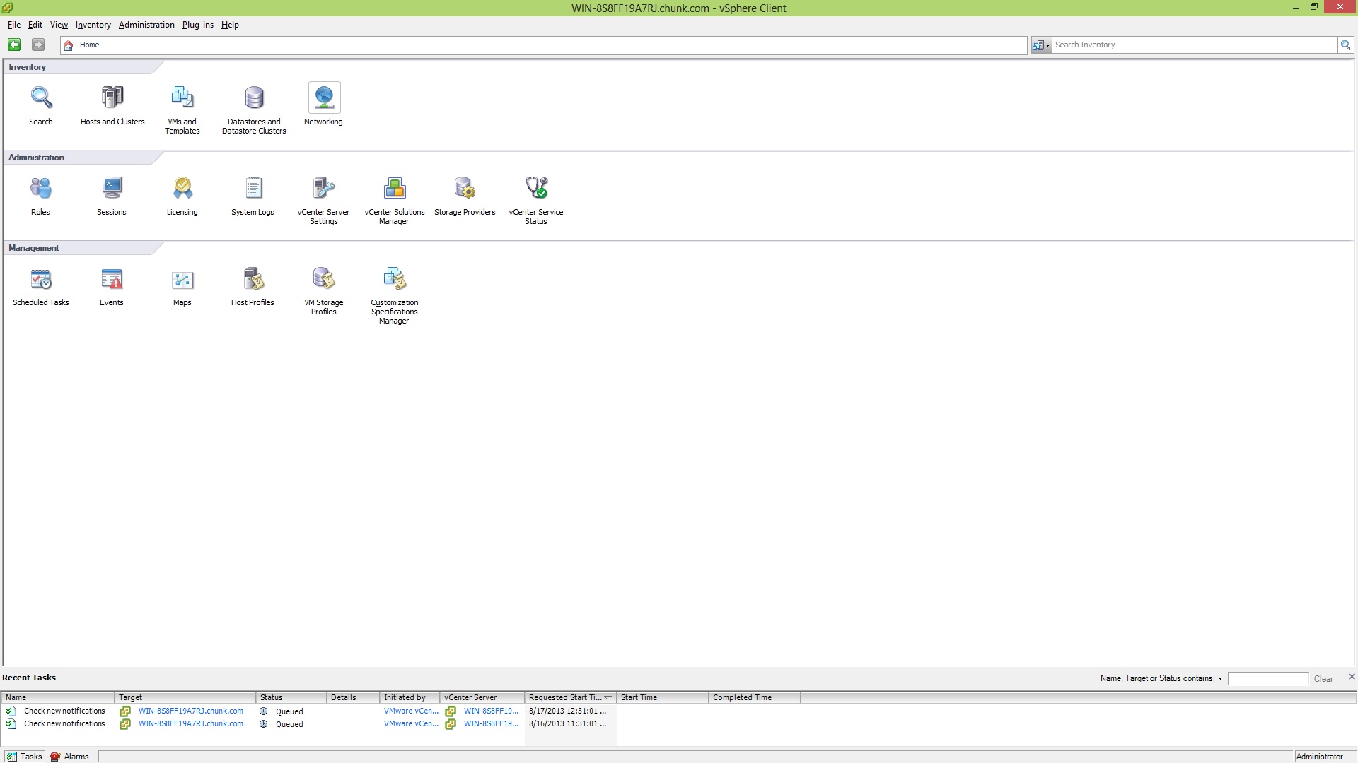 With the new NIC alive and kicking, it’s time to add a dvSwitch to our vCenter config. First stop is head Home in the vCenter client and then head over to the Networking group under Inventory: