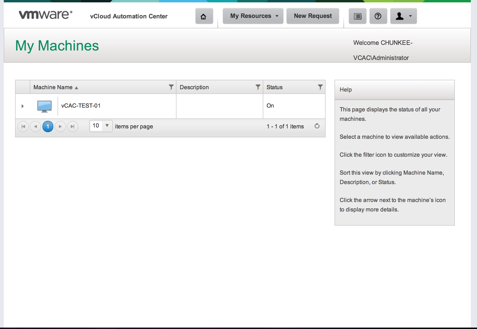 Low and behold it worked! We can see a new instance has been created with the prefix configured in our provisioning group. In trying this out yourself, don’t be disheartened if things go sideways along the road. The process of setting vCAC up, and ultimately getting it connected to an external service like EC2, is complex, but it does work. If something breaks along the way, pay attention to the dependencies and check that each discrete step that is required was performed and completed succesfully.