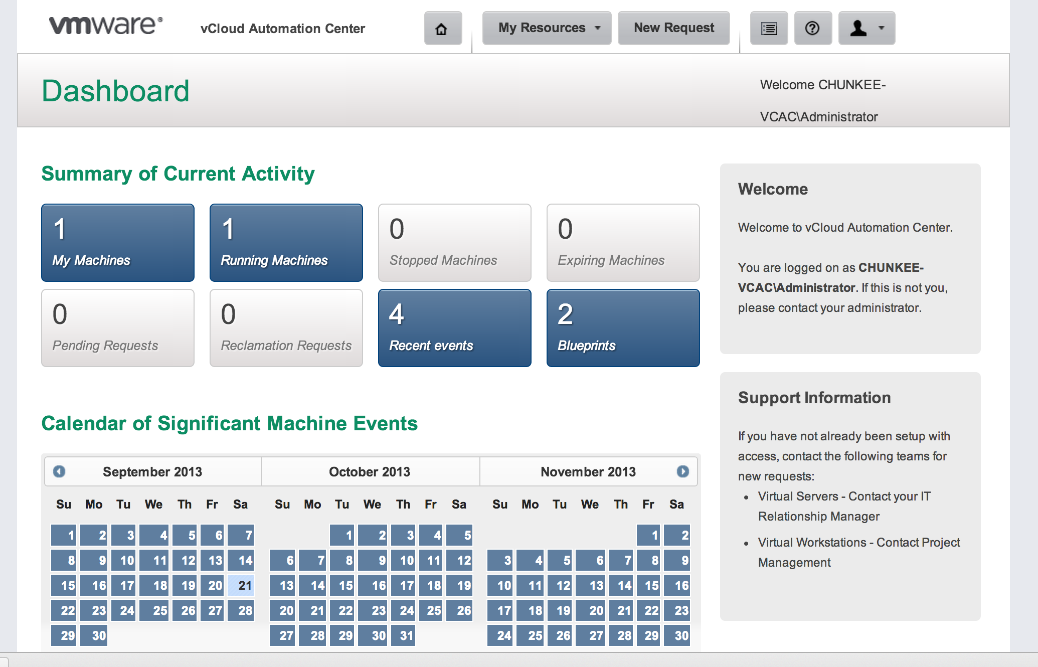 - Portals – like any good automation system, vCAC also provides customizable web portals. A consumption portal (the Self Service Portal) and an administrative portal for managing the service. Both provide dashboard functionality for reporting as well as the functions required for each class of user (consumer or admin).