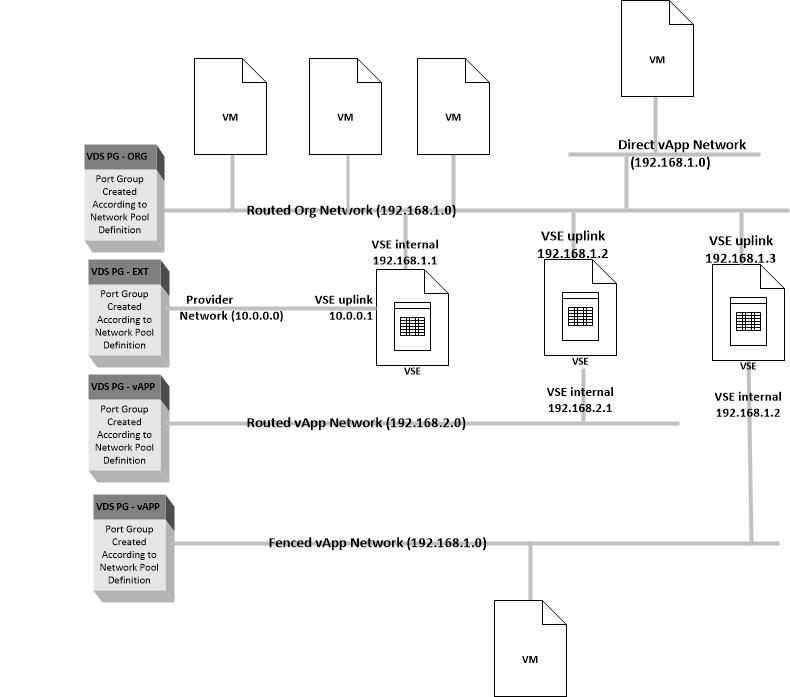 - Organization Virtual Datacenter (vDC): these networks are the basic building block of vCD networking and are your main virtual tenant network