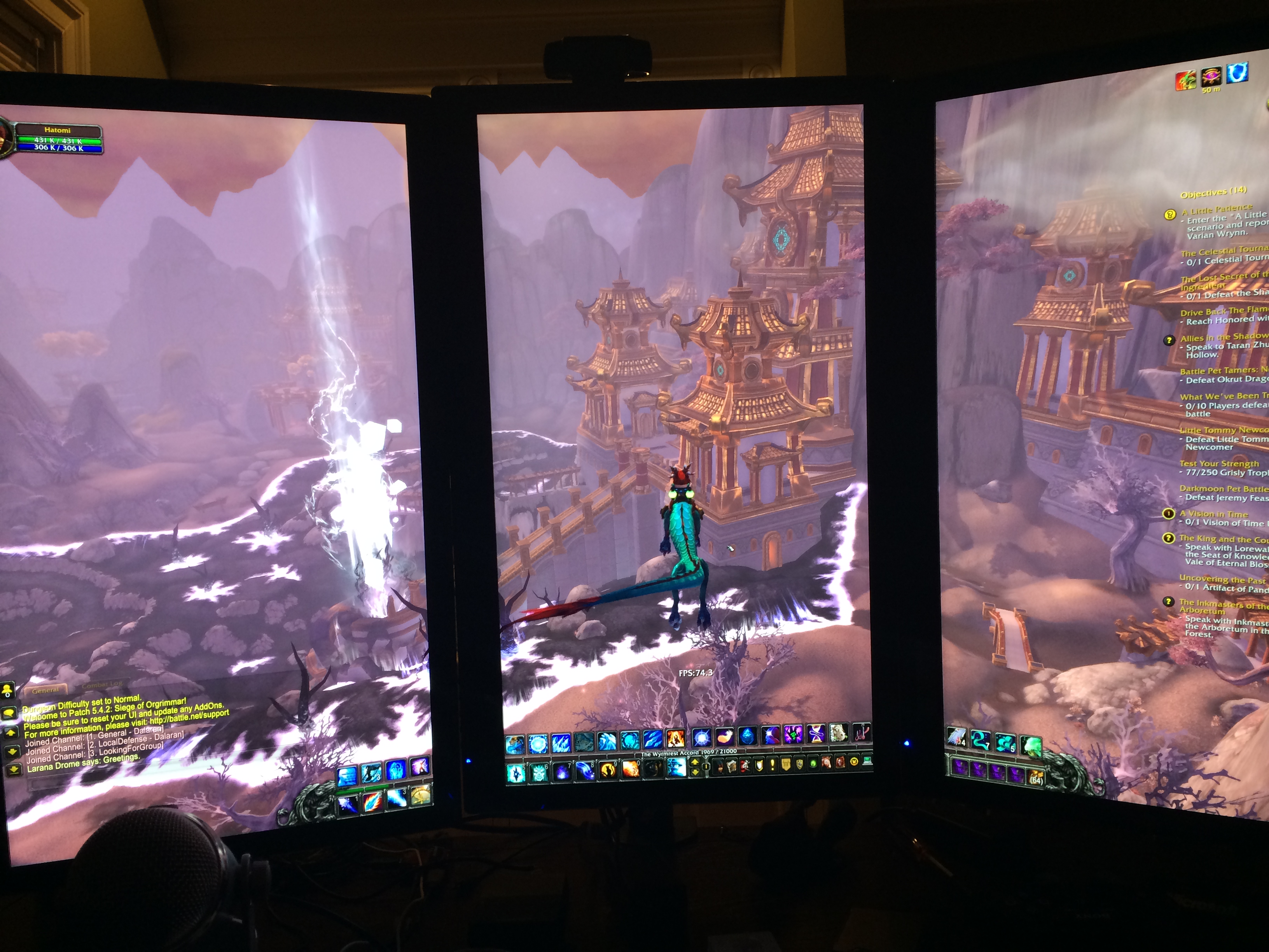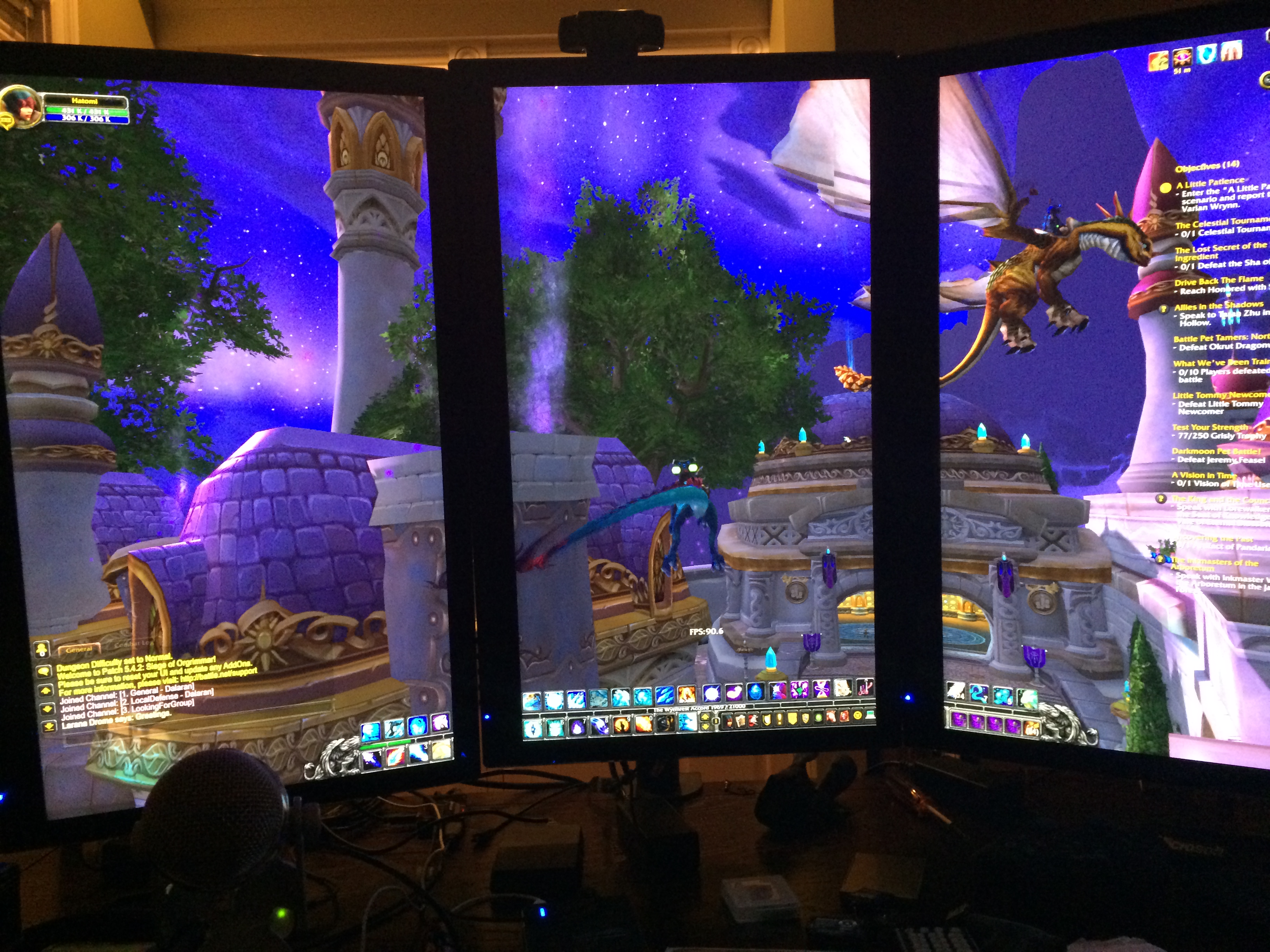 So the first round is a pretty solid success, if not really a surprise. Tri-SLI Titan can definitely handle World of Warcraft in 4k+ resolution and the experience was impressive. I’m not sure I can say it was more immersive than 3D, which was actually extremely cool, but there is also no fatigue in playing in portrait at this resolution. With 3D Vision I found that long play sessions weren’t really possible. An hour or so and the glasses would start to cause fatigue.