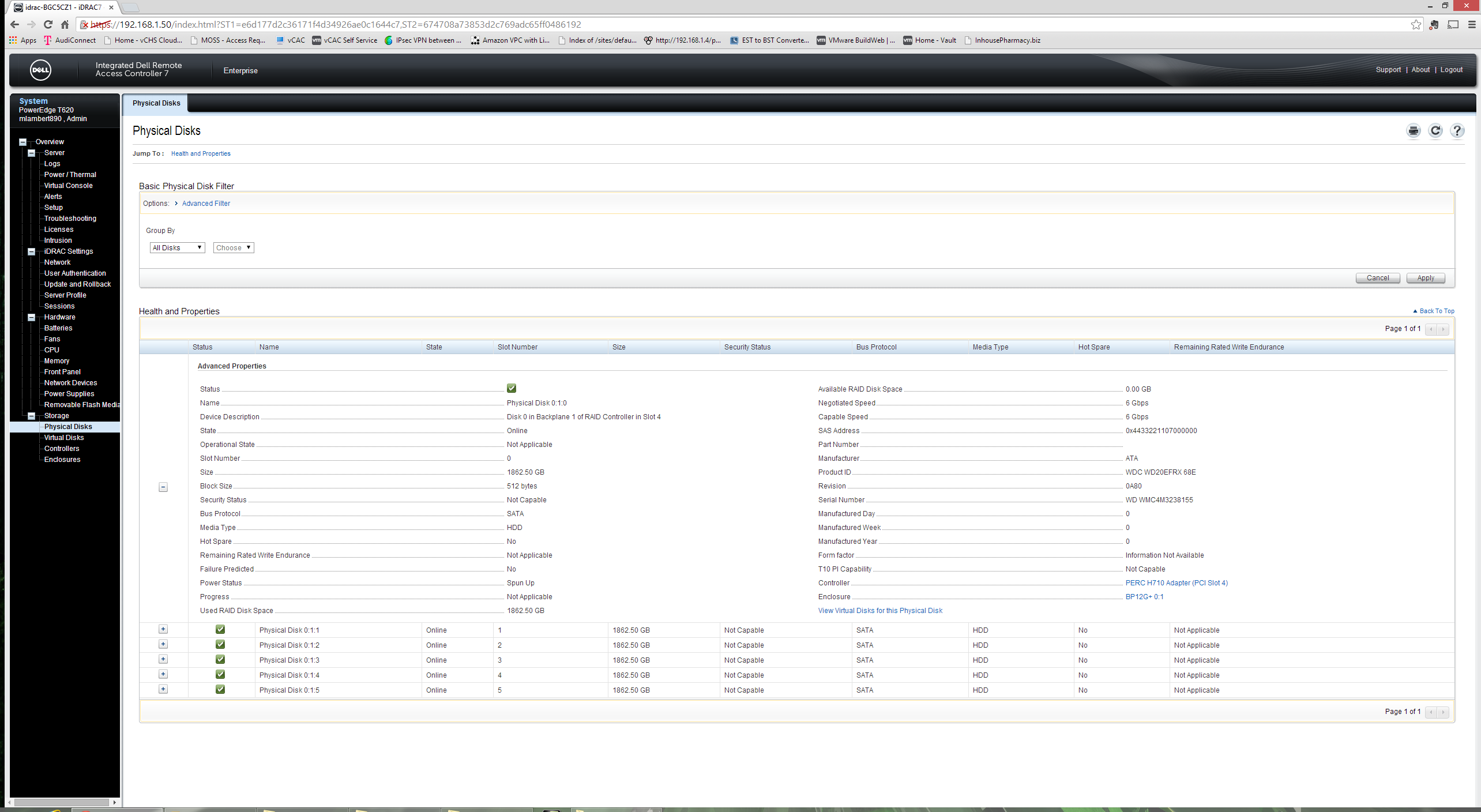Last entry we got to the point where we had swapped out one of the 1TB Toshiba 7.2k SATA 2 drives for a Western Digital Red 2TB SATA3 drive and were ready to power on the server to see what would happen. My assumption based on past experience was that the PERC H710 would complain (a lot) at best, or outright block the disk at worst. Here is how things turned out: