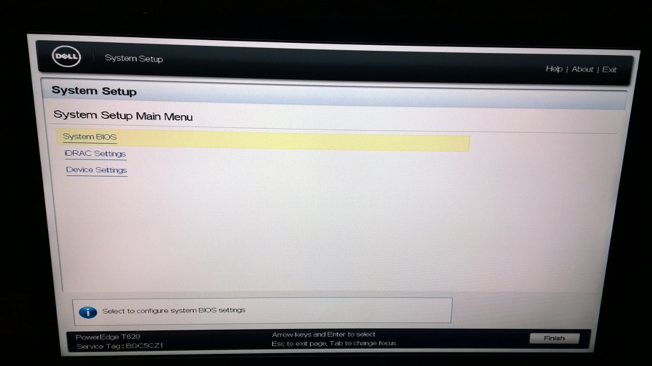 For this boot I selected “System Setup” which, after about 15 seconds thinking or so, launches the GUI based (with mouse support) main setup menu from which BIOS, iDRAC and Device settings can be reviewed and configured:
