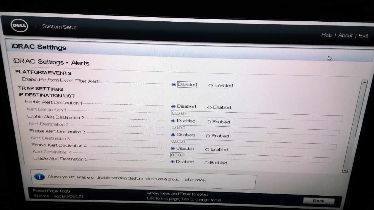 Under Alerts we are able to set SNMP trap destinations for platform events generated by the iDRAC: