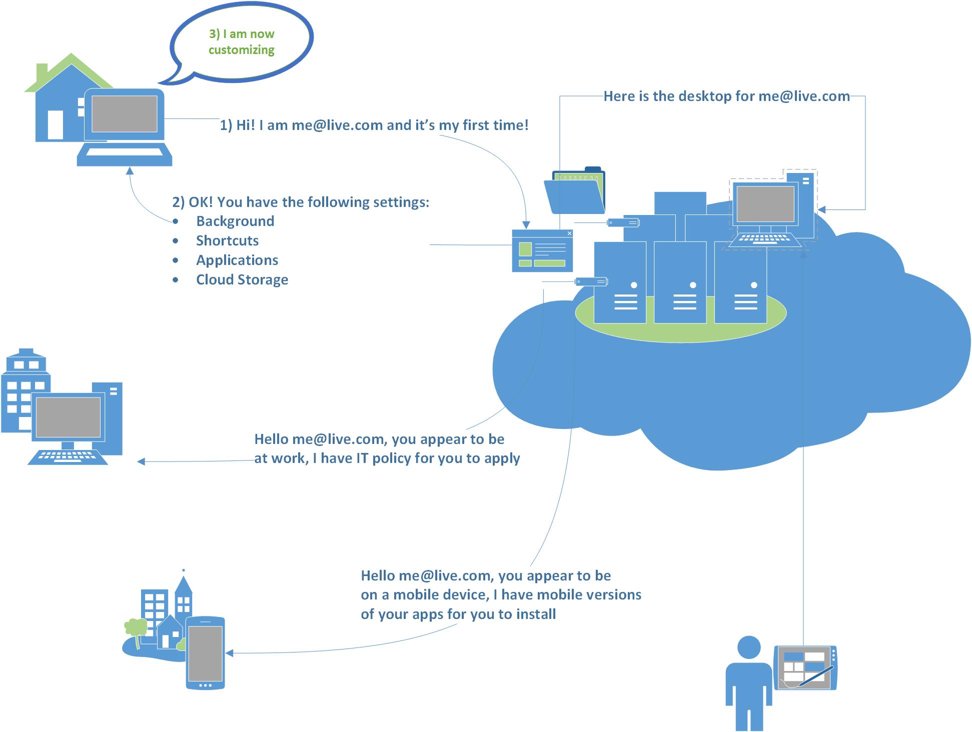 - VDI fits into the story much the same way the corporate desktop does. If a user signs up for an Azure desktop (corporate or consumer), their existing profile is preserved onto that desktop. Any applications and customization are brought along