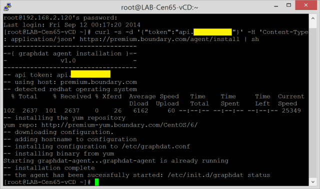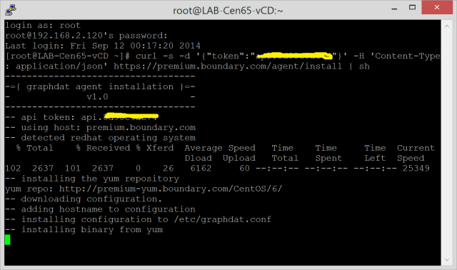 Next I decide that vCenters little blue line looks lonely and not nearly as cool as the dense seismograph Boundary uses in promotional materials! Plus, what’s life for an admin without some Linux action? To keep vCenter company, I decide to add my vCD 5.5 instance (now extinct, but still running in my lab). First up, we SSH into the primary cell and enter the handy provided CURL syntax (note, API required to associate the instance):