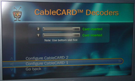 - Configuring them, in this case, basically means going into the CableCARD menu, verifying Network Setup, CableCARD(tm) Pairing, and CableCARD(tm) Status. It also means waiting a bit for the cards to initialize