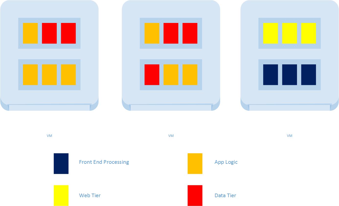 - Application Architecture – cloud design patterns are a fascinating turn around for development. Enterprise developers spent years, and technology providers built a plethora of technology and process, in order to create invulnerable platforms for code. Fault tolerance and high availability are industries because of this. Cloud basically throws all of that away. The mantra in cloud is “infrastructure is a disposable commodity” (this is the brilliant “Pets vs Cattle” analogy coined by Gavin McCance at CERN back in ’12) The idea in cloud design is to design for fail. You build resilience and statelessness into the application architecture and rely on smart orchestration to provide a consistent foundation even as individual components come and go. Containers are a natural extension of this concept, extending control down into each virtual machine. Container architectures can allow something like this: