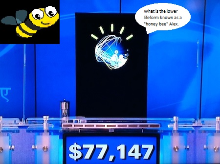 I think we have reached the point today where it is worth asking… Is the most sophisticated machine intelligence (take Watson, as an example) any more or less “intelligent” or “sentient” than a bee? And is it alive? The obvious answers are “no”. But this answer begs the question “why not?” It is almost certainly based on the above simple rules of “I know it when I see it” and “IF organic THEN alive”. It is time to have a serious discussion about how sufficiently sophisticated human generated code measures up against the least sophisticated nature generated code. Watson, meet honey bee!