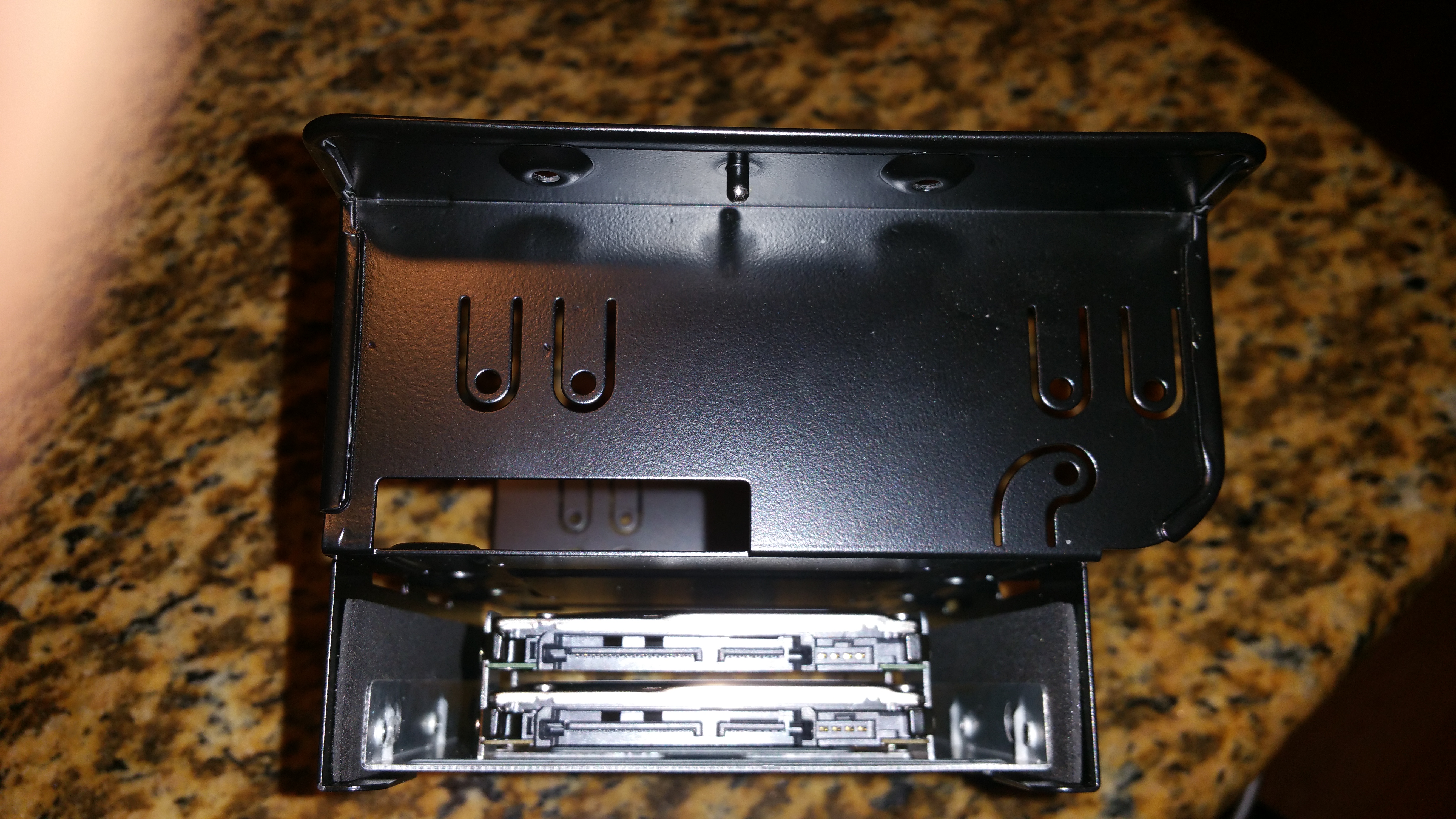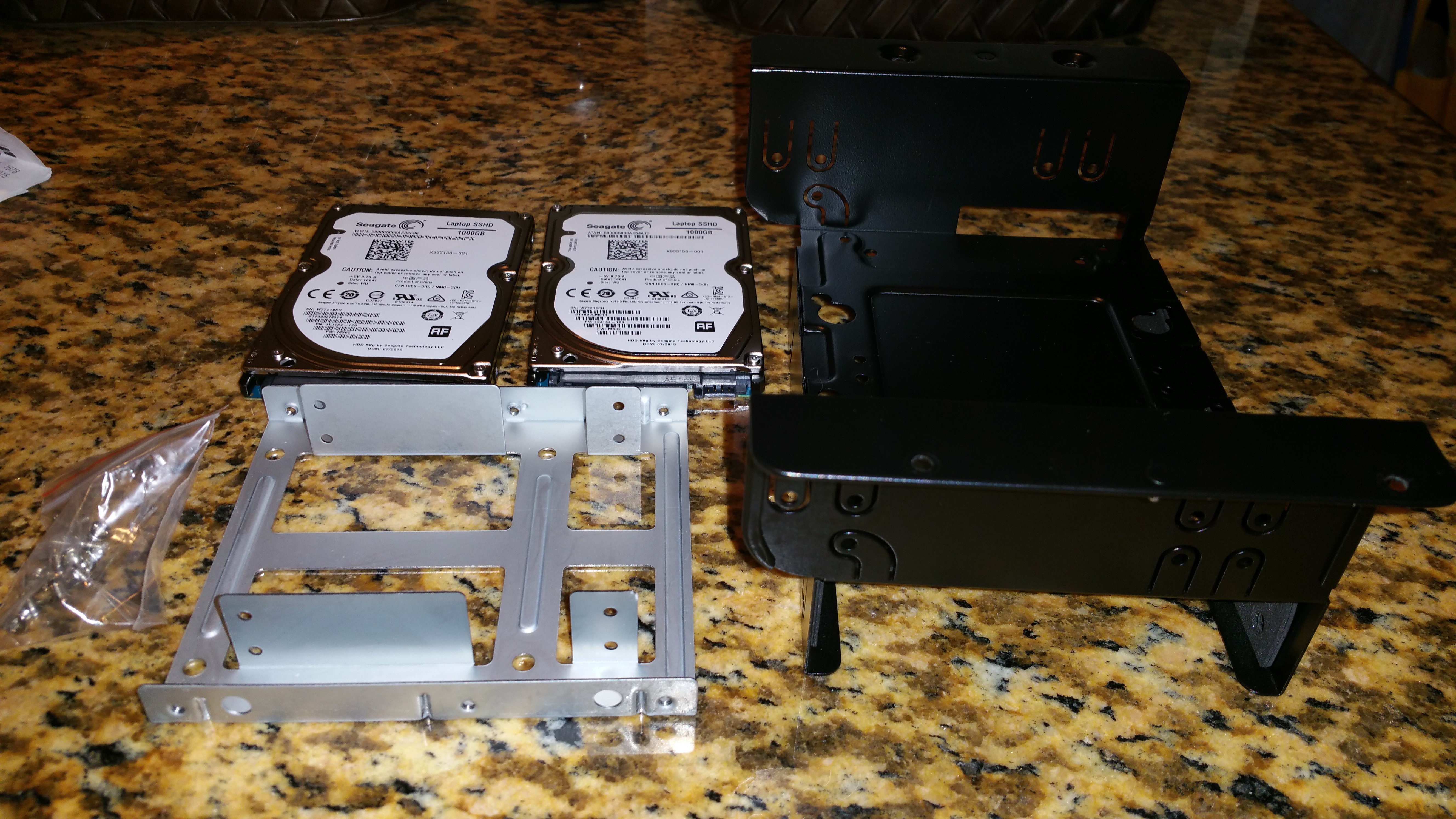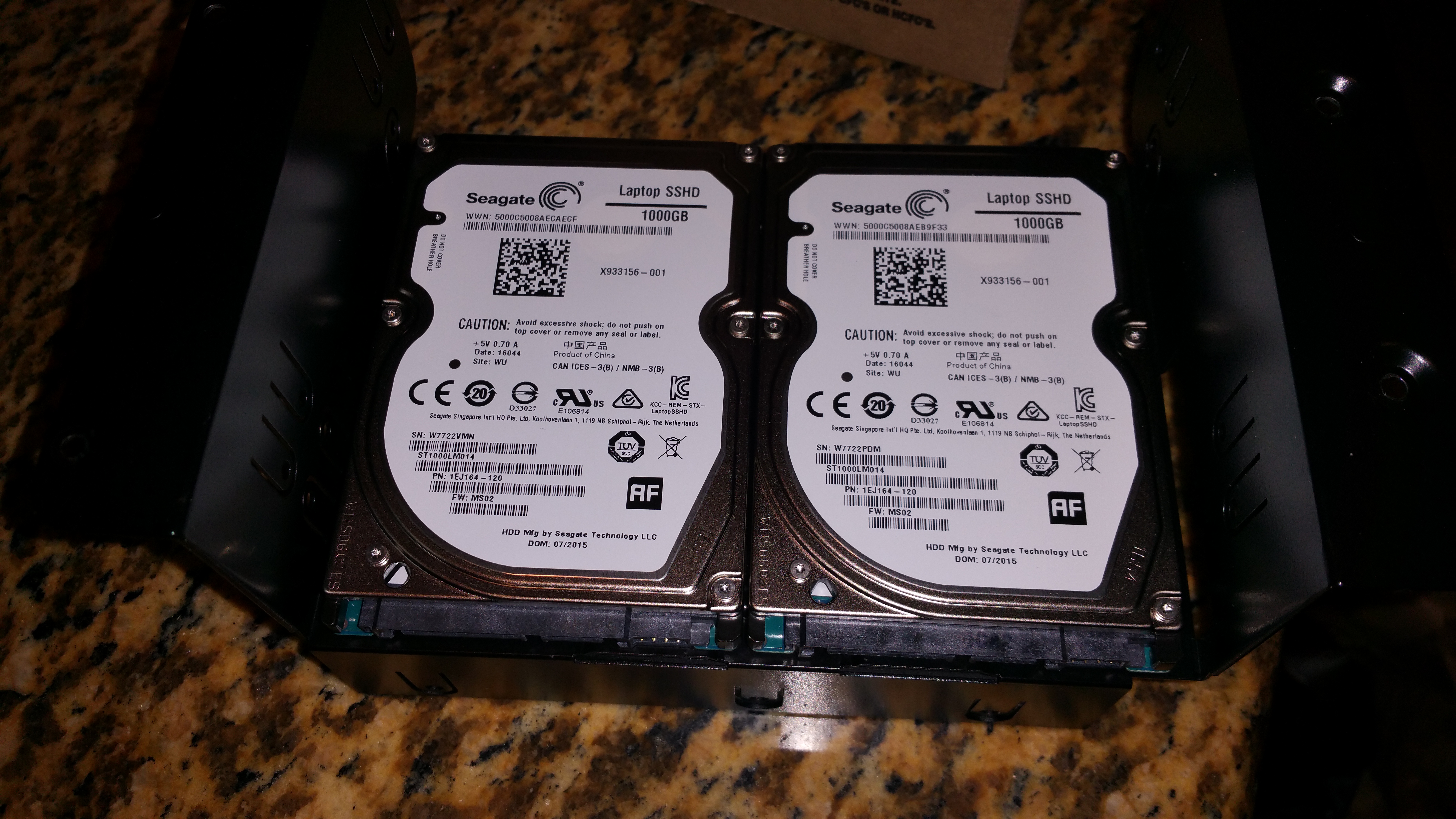 The ST1000LM014’s are a bit thicker than an SSD at 9.5mm, but two still fit nicely in the 3.5″ converter:
