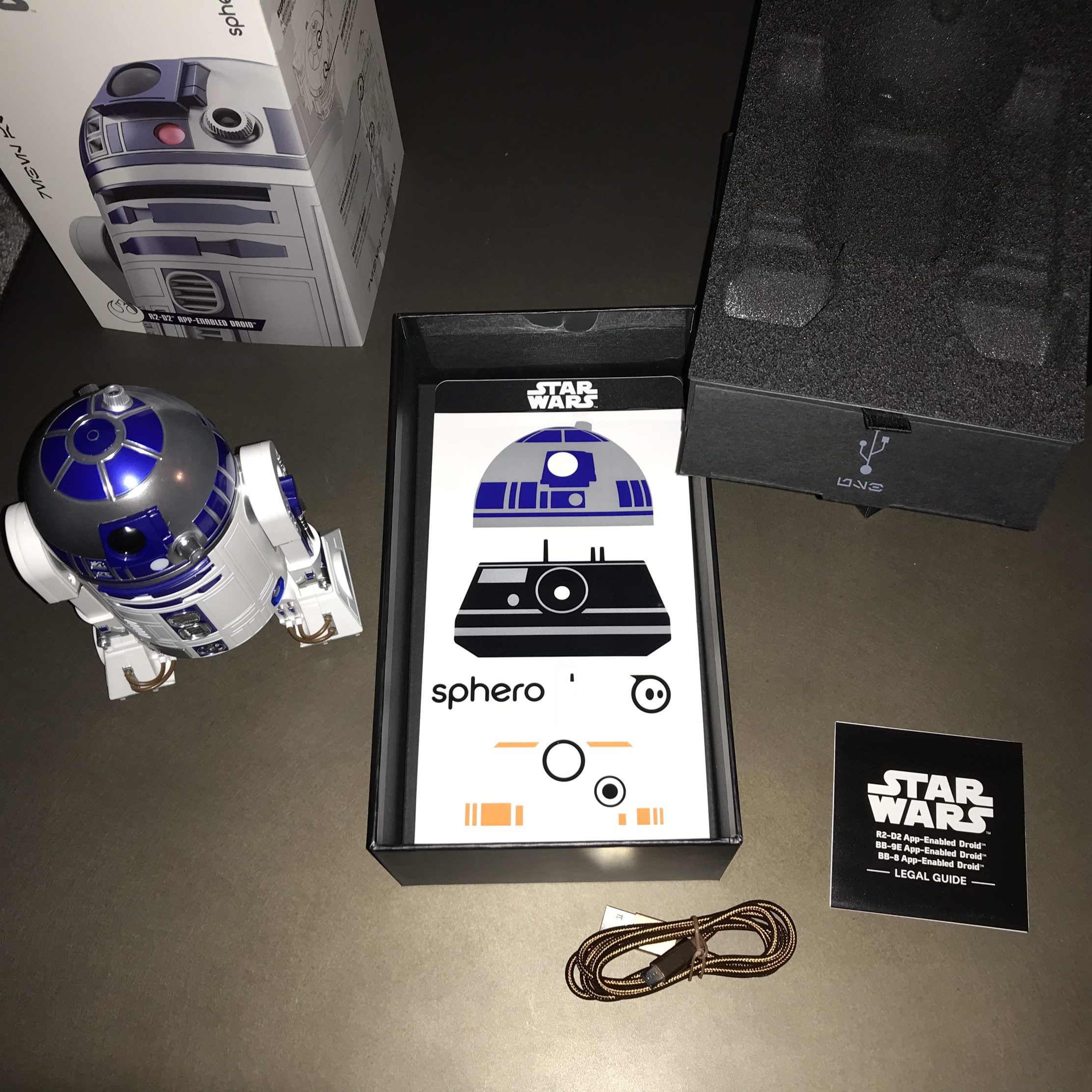 Lifting R2 out of his shipping foam, a small collection of pack-ins are revealed. Not much to see here, just a C3PO themed USB cable used for charging (which was a hilarious touch), a “legal guide” (because lawyers) and a (very) thin “getting started” manual. To be honest this is all you really need: