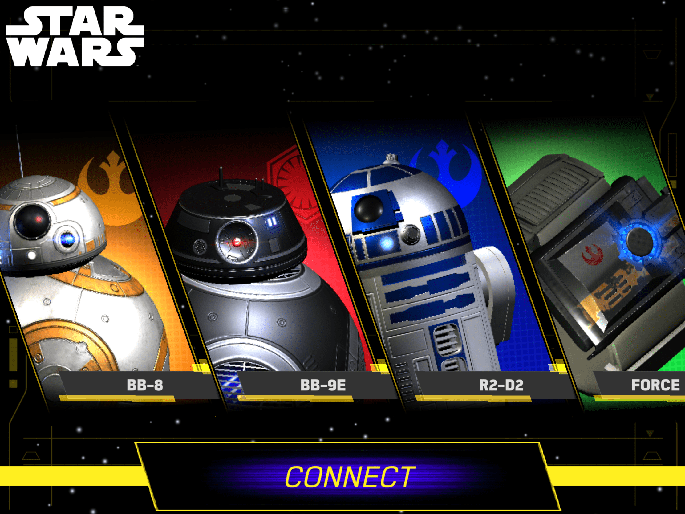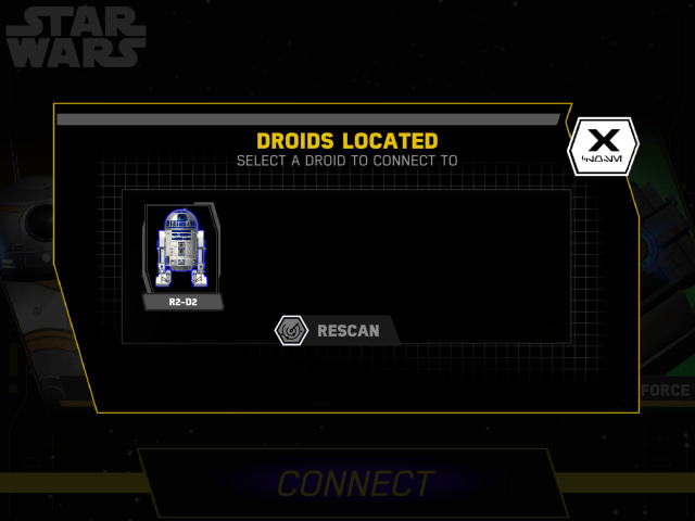 After clicking CONNECT, the app will search (via Bluetooth discovery) for any of the Star Wars Spheros. That’s another thing worth noting. The droids are controlled via Bluetooth with pairing handled silently by the app and droid firmware. Yay! It’s R2! Let’s connect: