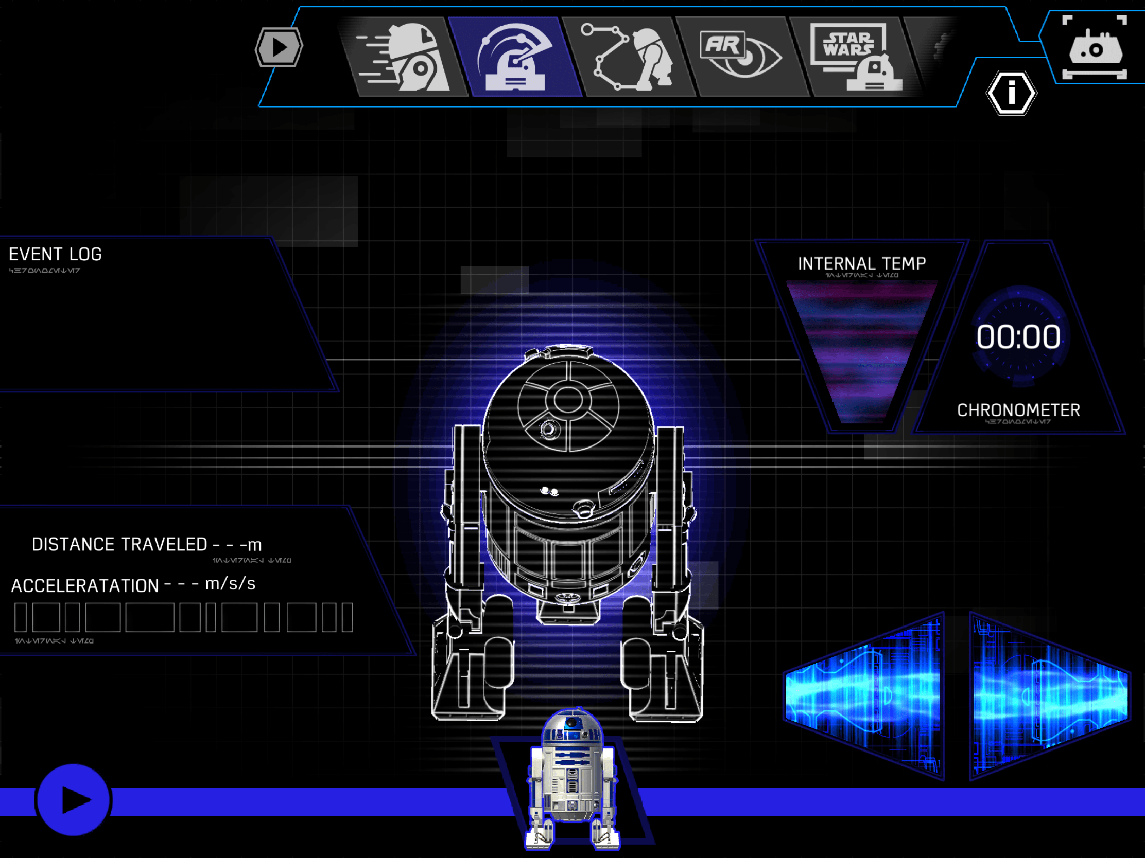 The stats screen provides some actual real metrics on mini R2. OK maybe “internal temp” is BS, but distance traveled and the speedometer are real. Cool!
