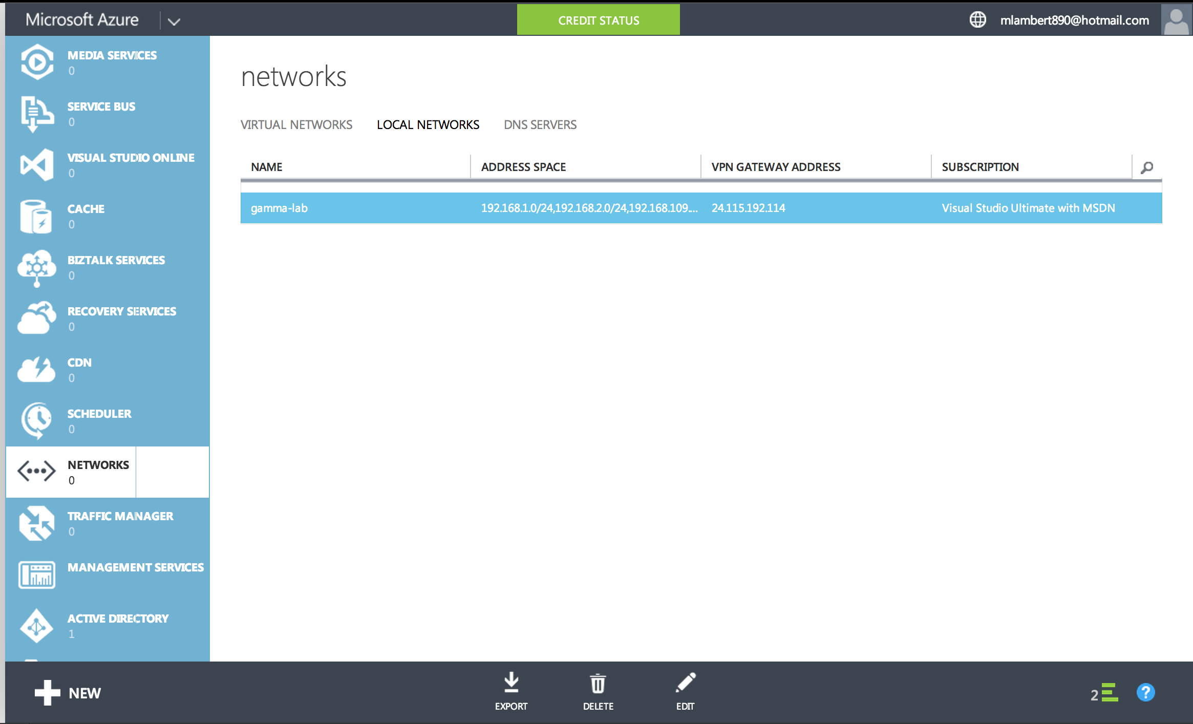 • Local Network – the dialogue boxes are confusing during the VPN creation workflow for local networks, but more straight forward when adding them from the main Network Services menu.  As expected, Local Networks refer to on-prem IP space.  The Local Network definition is also where you specify your VPN endpoint IP
