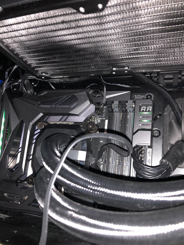 There is no way around the fact that this definitely adds up to a loss in cooling performance. What this translated to in our observations on an overclocked 8700K set to 4.9Ghz all cores and auto voltage (yikes!) was 2-3C during Prime95 max heat. With either fan setup, this configuration eventually pushes the system well into the upper 90s and both will hit 100 and throttle eventually, so not a giant difference. Worth nothing though that there is a price to pay here for looking sharp, which is too bad!